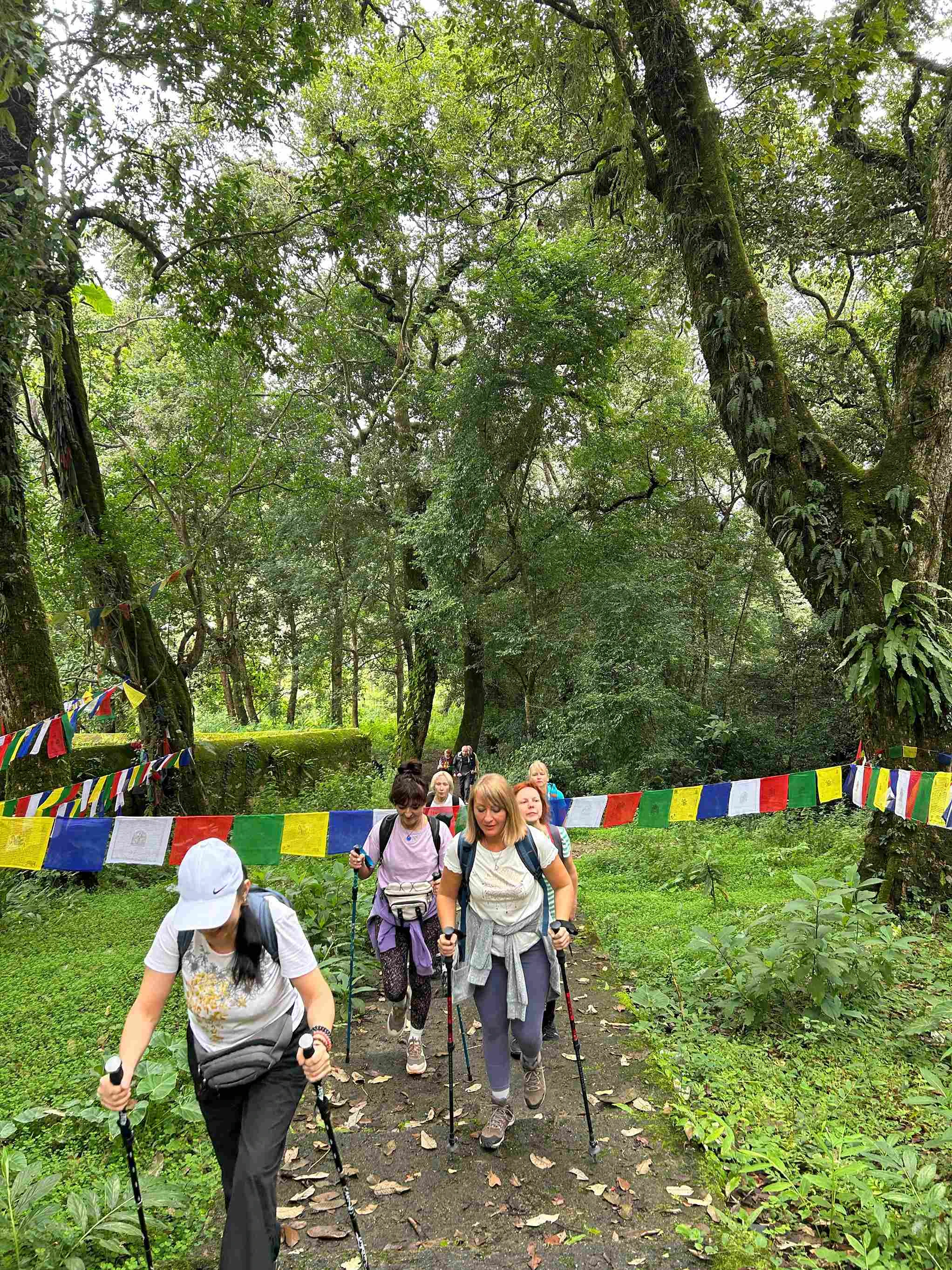 The hike reaches the highest hill around the valley, giving you clear views of the Himalayan range and the green landscape below. In spring, the forest is full of blooming rhododendrons and magnolias, while throughout the year it is an excellent spot for birdwatching. More than 300 bird species have been recorded in this area, making it a paradise for nature lovers and photographers.
