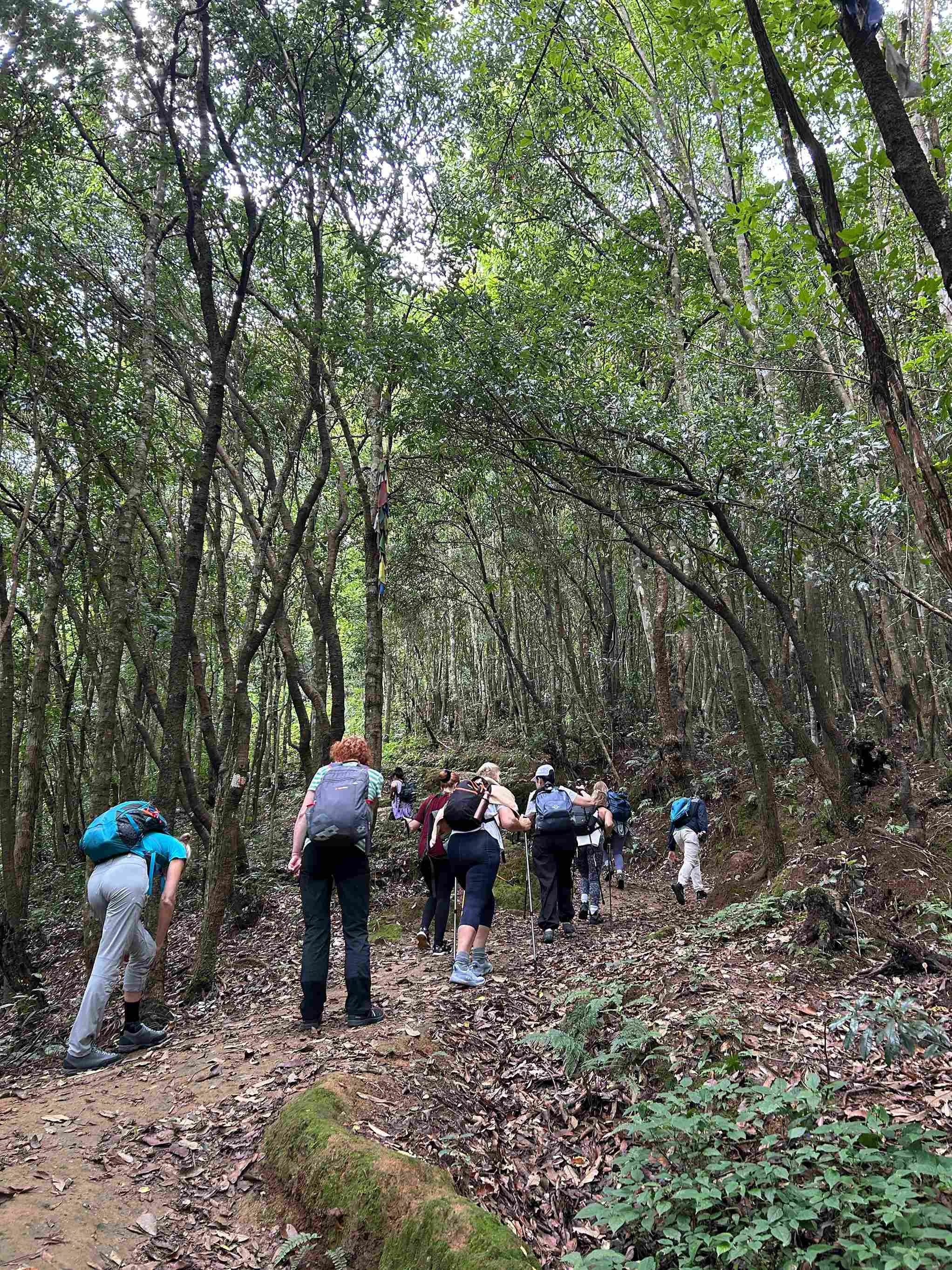 The descent follows the same route and takes about two hours downhill. It is easier and quicker, giving you more time to appreciate the quiet forest and occasional birds or butterflies along the way.