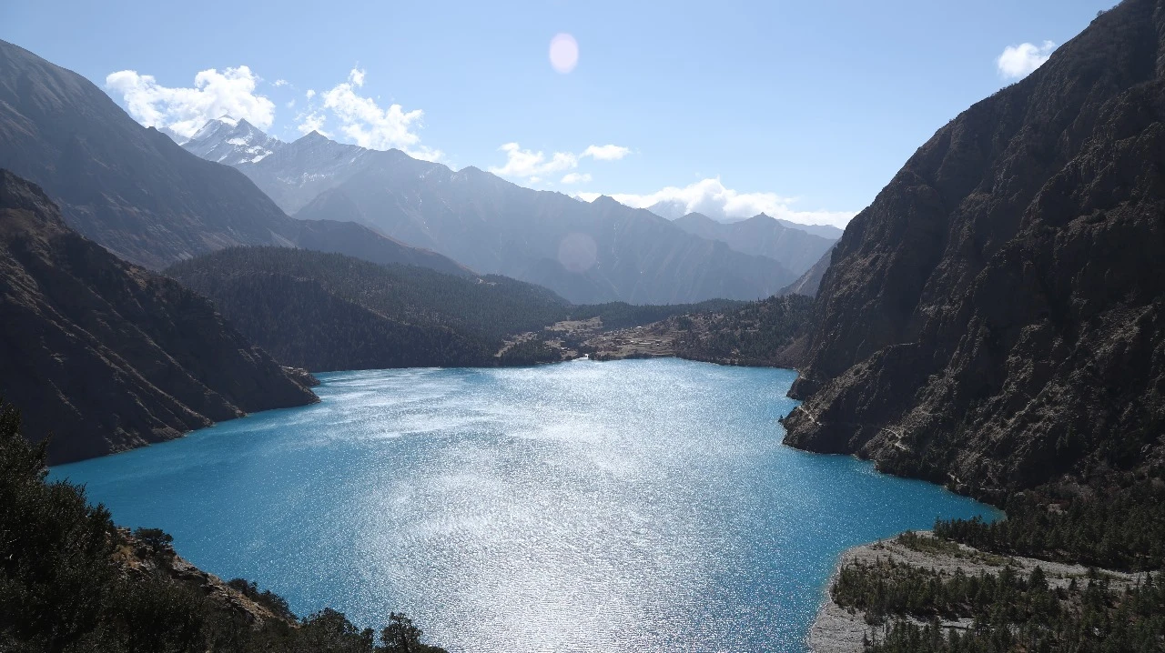Visit the stunning turquoise Shey Phoksundo Lake, one of Nepal’s most beautiful high-altitude lakes, surrounded by cliffs and snowy peaks.